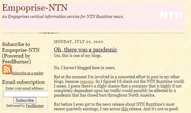Now I don’t always eat my own wildebeest food myself in this regard. I’ve previously noted that my Empoprise-NTN blog isn’t updated regularly; in fact, it has only had one update in the last five years. (And no, I can’t really use COVID as an excuse.)