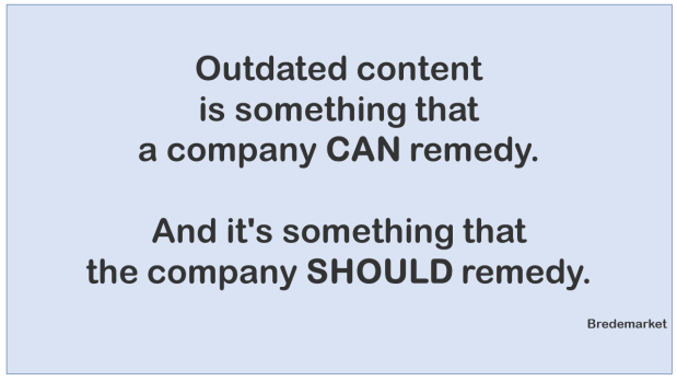 Although I refrain from linking to them, I know of countless bad examples of outdated content. Web “news” pages or social media accounts with no posts in years. LinkedIn company pages with no posts at all. Companies that haven’t posted presentations in a decade. Data sheets that prominently mention a product’s compatibility with Windows 7. Companies that post wonderful YouTube videos, but then fail to share the video link on their other social media channels or on their own website.
