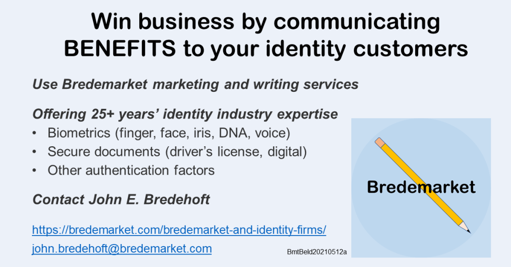 And if you’re an identity product/service provider that needs help in communicating customer benefits in proposals, case studies, white papers, blog posts, and similar written output, Bredemarket can help. Contact me.