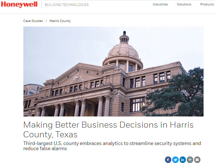 I’ve worked with Honeywell’s customer, Harris County, Texas, but not on its security systems per se.