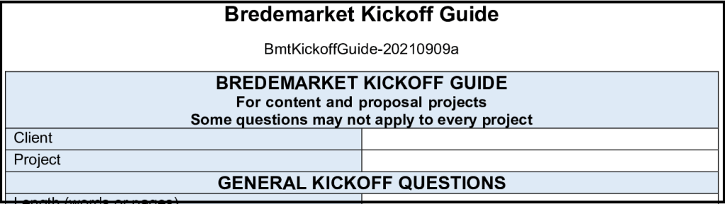 So I’ve created a form that I can use for either the content or proposals sides of the Bredemarket business, and the form contains all of the questions that I need to ask a client at the beginning of an engagement.