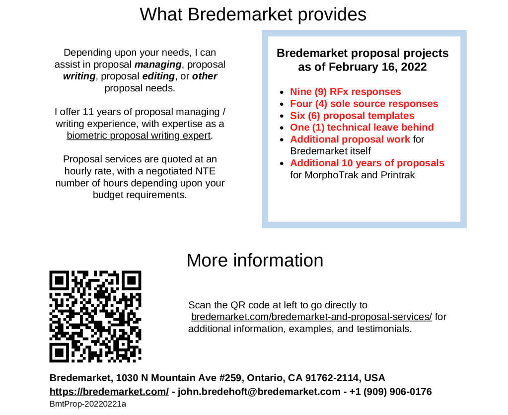 If you saw my “two truths and no lies” post, you probably saw that I recently updated my Bredemarket and Proposal Services page and the accompanying collateral.
