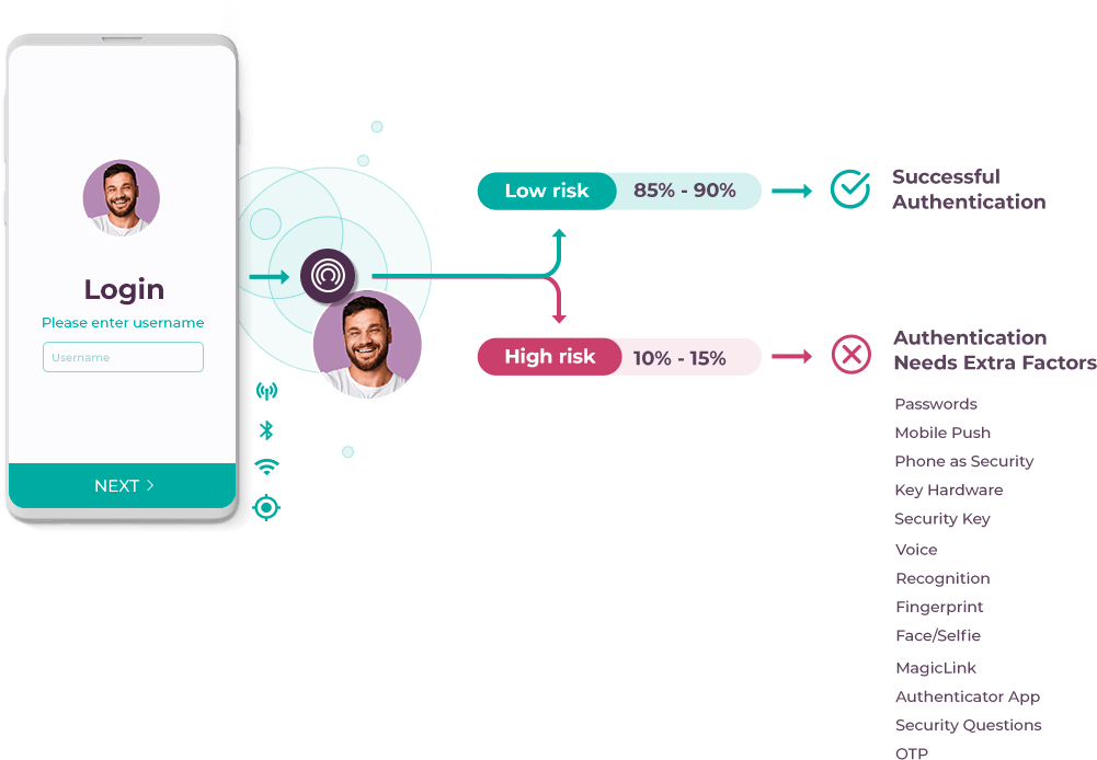But what if I perform a transaction on the other side of the country, in a location that I have never visited before? Then Incognia uses additional factors of authentication to verify my identity.