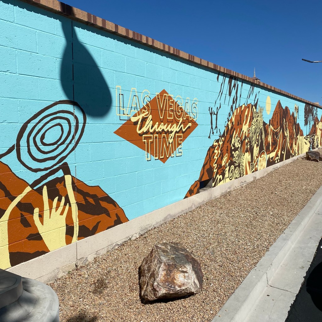 This parking lot wall depicts the history of Las Vegas. Kane had nicer pictures in her Art Talk; cars obscured much of the wall when I visited.