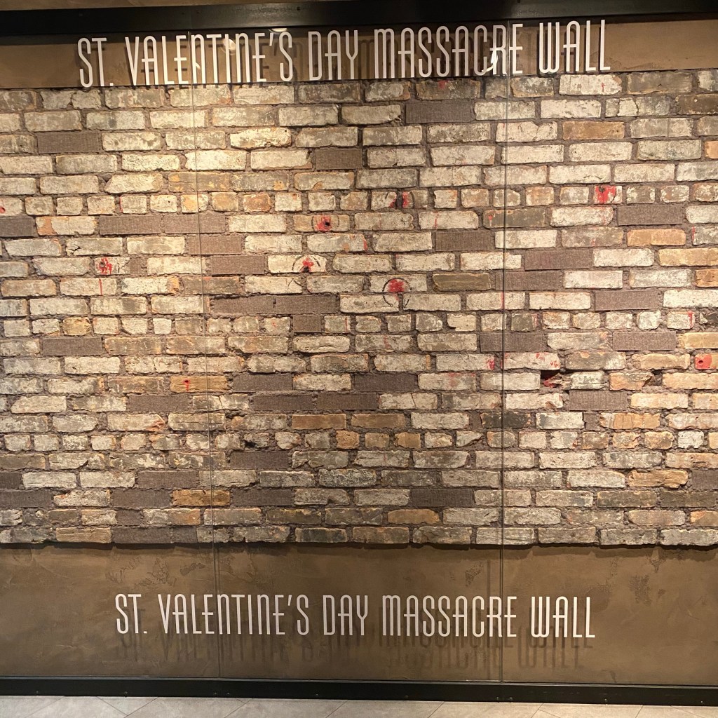 This wall was the backdrop from Chicago’s St. Valentine’s Day Massacre in 1929. The bricks were subsequently relocated to Las Vegas.