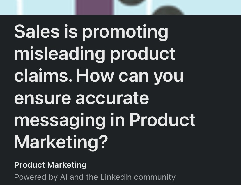 One of the drawbacks of LinkedIn’s collaborative articles is that the answers end up in a difficult-to-access place. So I’m repurposing my recent answer to an article on ensuring accurate messaging. My original answer is buried within https://www.linkedin.com/advice/3/sales-promoting-misleading-product-claims-how-hpzxf?contributionUrn=urn%3Ali%3Acomment%3A%28articleSegment%3A%28urn%3Ali%3AlinkedInArticle%3A7277750320556855296%2C7277750322389807104%29%2C7291507111144919040%29&dashContributionUrn=urn%3Ali%3Afsd_comment%3A%287291507111144919040%2Curn%3Ali%3AarticleSegment%3A%28urn%3Ali%3AlinkedInArticle%3A7277750320556855296%2C7277750322389807104%29%29&articleSegmentUrn=urn%3Ali%3AarticleSegment%3A%28urn%3Ali%3AlinkedInArticle%3A7277750320556855296%2C7277750322389807104%29 (told you it was difficult to access).