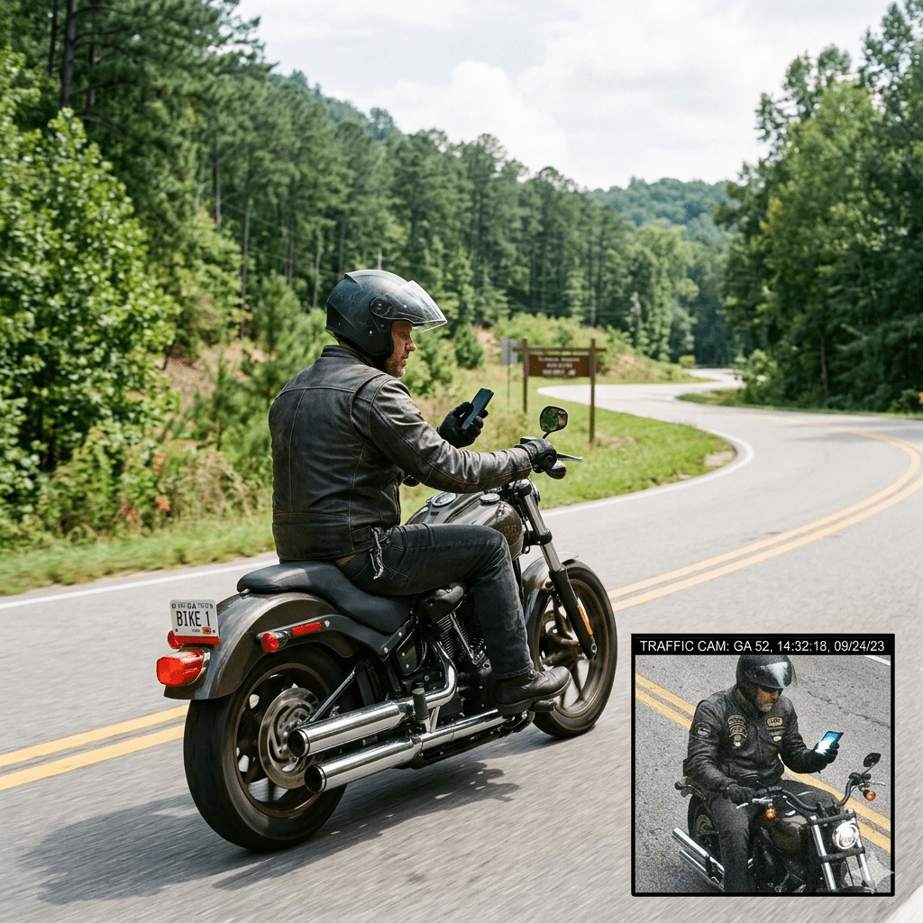 “Georgia State Patrol used its system of Flock automated license plate reader (ALPR) surveillance cameras to issue a ticket to a motorcyclist who was allegedly looking at his cell phone while riding, according to a copy of the citation obtained by 404 Media….The incident happened December 26 in Coffee County, Georgia. The ticket lists the offense as ‘Holding/supporting wireless telecommunications device,’ and includes the note ‘CAPTURED ON FLOCK CAMERA 31 MM 1 HOLDING PHONE IN LEFT HAND.’”