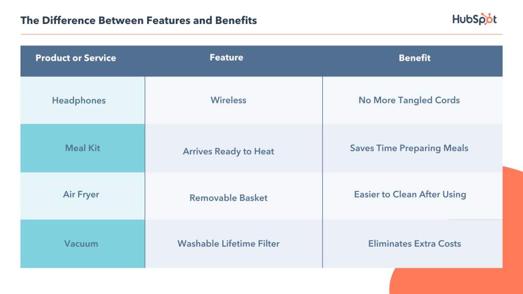 Don’t get me wrong. Features are important. Someone needs to know what your gizmo does, whether it’s wireless, ready to heat, has a removable basket, provides a washable lifetime filter, or whatever.