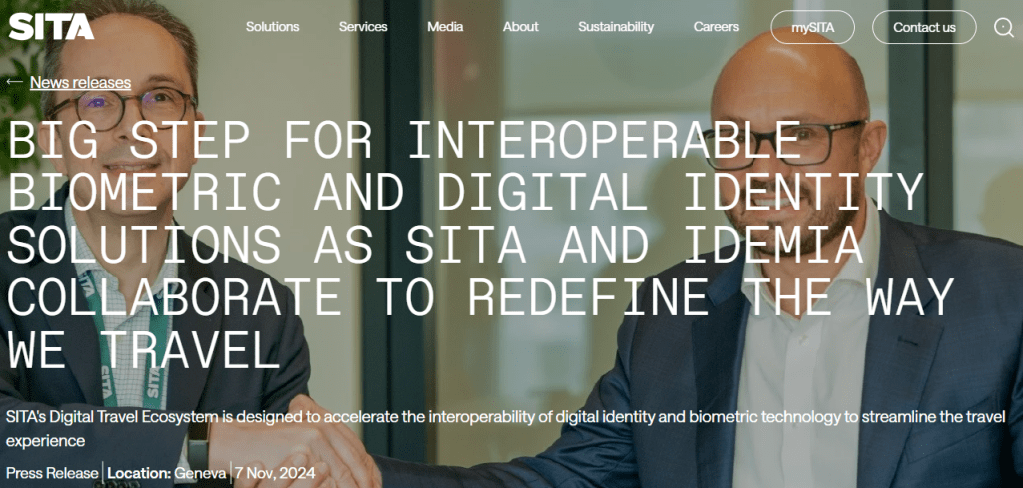 SITA, the global leader in air transport technology, and IDEMIA Public Security, a world leader in digital technologies, biometrics, and security have announced a collaboration to advance interoperability, trust, and data security through a globally recognized Digital Travel Ecosystem.