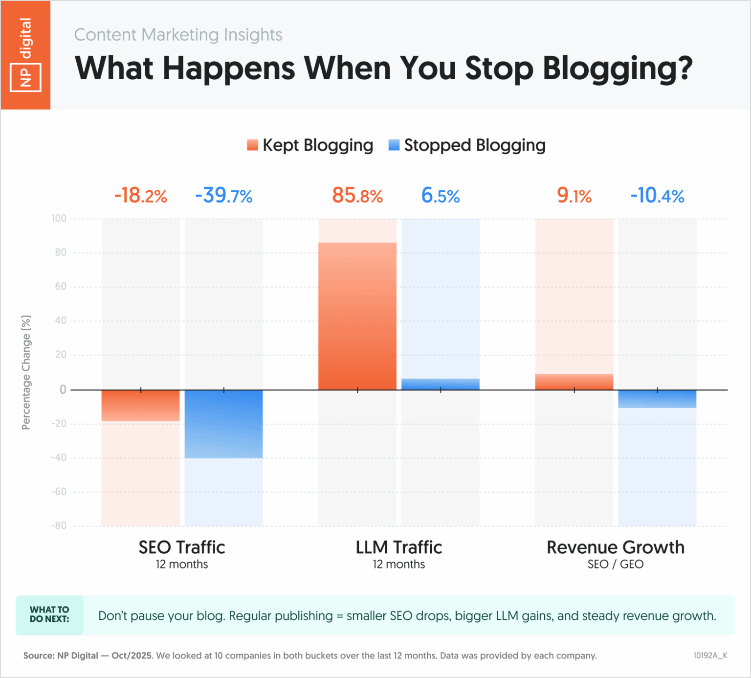 Not that you care about SEO. That’s old school. LLM traffic is what you want to optimize these days. And the companies that don’t blog saw a 12-month increase of 6.5% in LLM traffic.