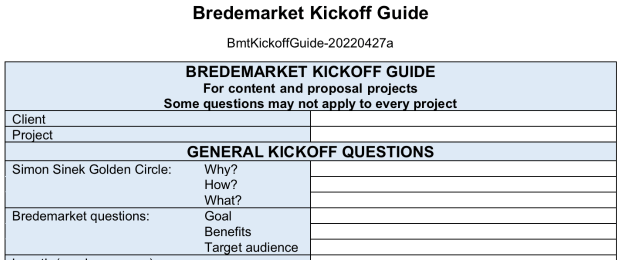 The beginning of the Bredemarket Kickoff Guide that I use. There are many, many more questions that I haven’t disclosed. Do you want to learn them? Buy the service.