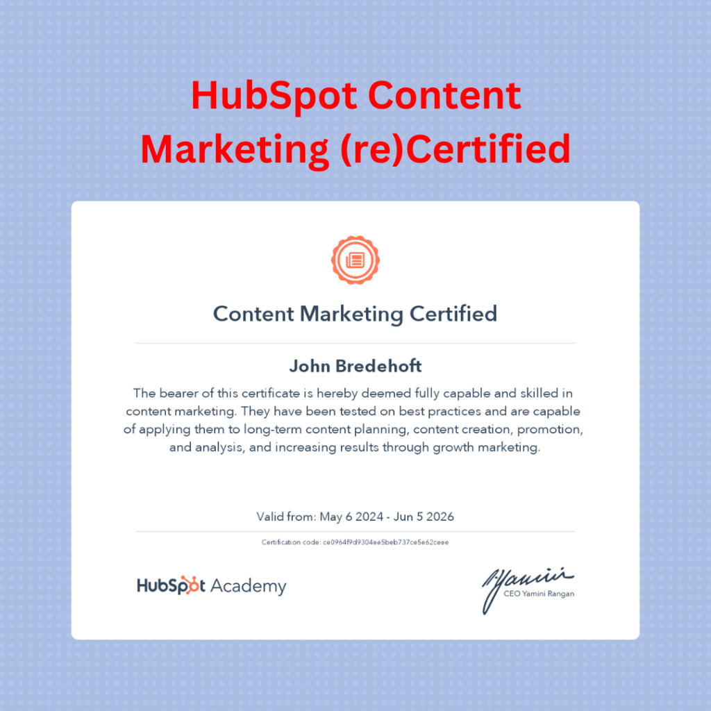 My HubSpot certification only has true meaning if I use the knowledge while creating content.