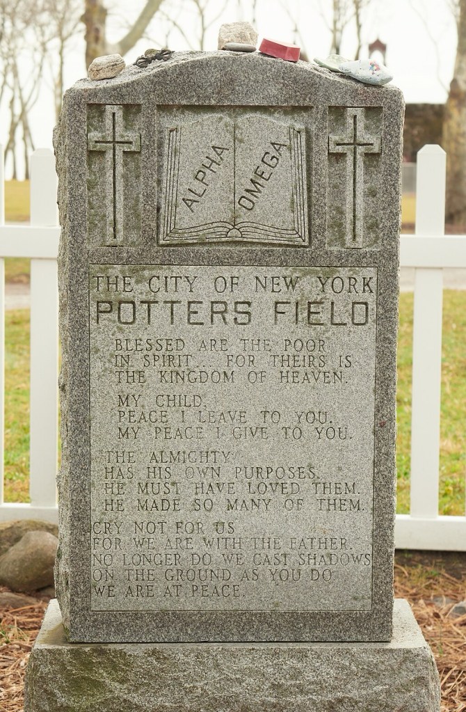 Potter’s Field monument, Hart Island. From Wikipedia. CC BY-SA 4.0.