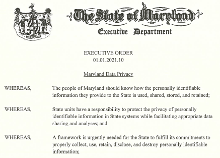 But for law enforcement agencies in Maryland, the “public safety” exemption pretty much limits the applicability of THIS executive order (although other laws to correct public safety data would still apply).