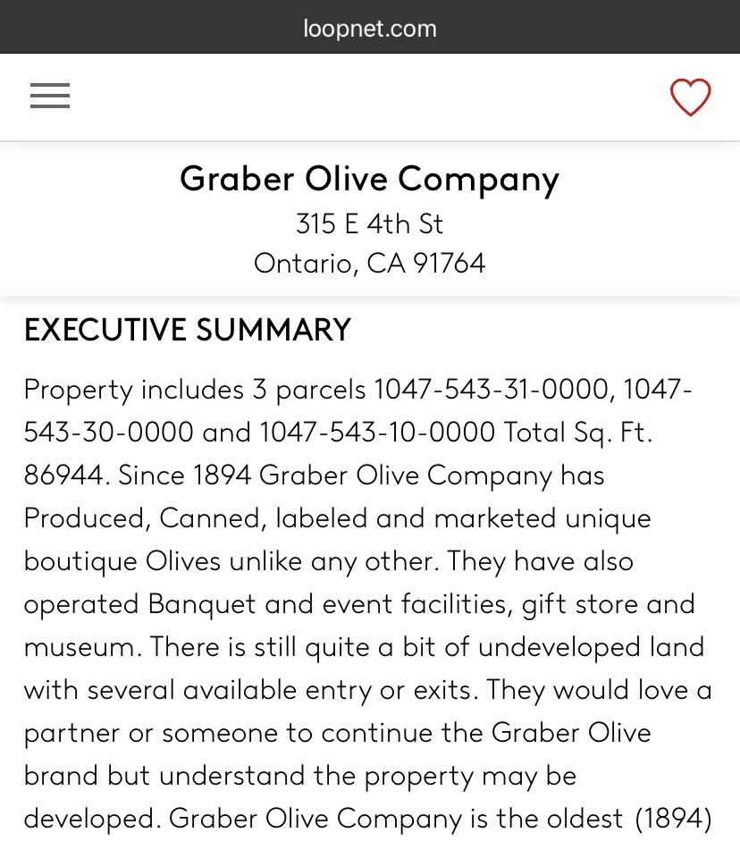 “They would love a partner or someone to continue the Graber Olive brand but understand the property may be developed.”