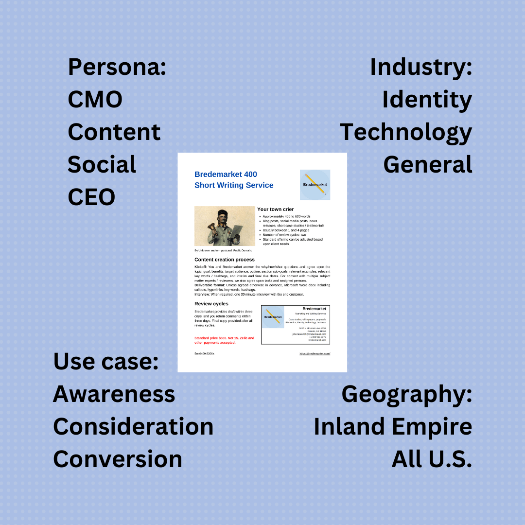 Bredemarket can now help others in the identity/biometric industry, including the hiring firm’s direct competitors, with THEIR differentiation—in the same way Bredemarket has differentiated other companies.