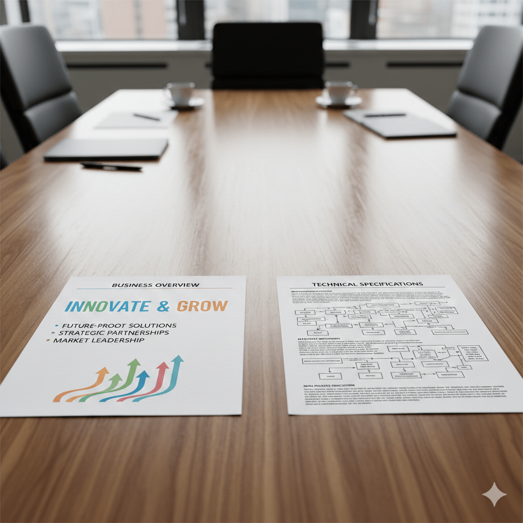 For the purpose of this post I’m going to dramatically simplify the process by saying there are only two stakeholders for any RFP and any proposal responding to said RFP: “business” people, and “technical” people.