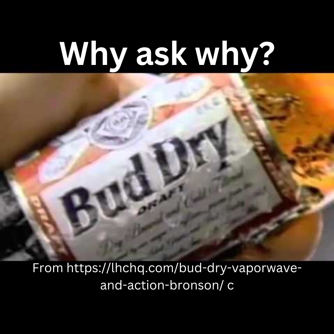 If you don’t remember, “Why ask why? Try Bud Dry” was a short-lived advertising tagline from a short-lived Budweiser product from some short-lived part of the early 90s…