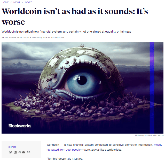 That’s the only thing that I’ve said about Worldcoin, at least publicly. (I looked at Worldcoin privately earlier in 2023, but that report is not publicly accessible and even I don’t have it any more.)