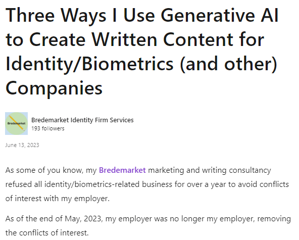 My compulsion to share stuff about identity and biometrics, which you can see if you visit my Bredemarket Identity Firm Services LinkedIn page and Facebook group.